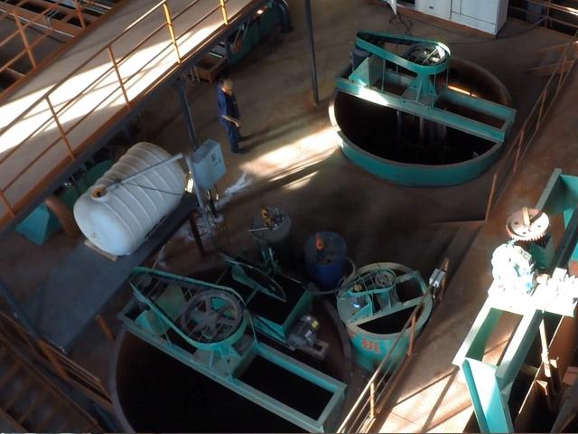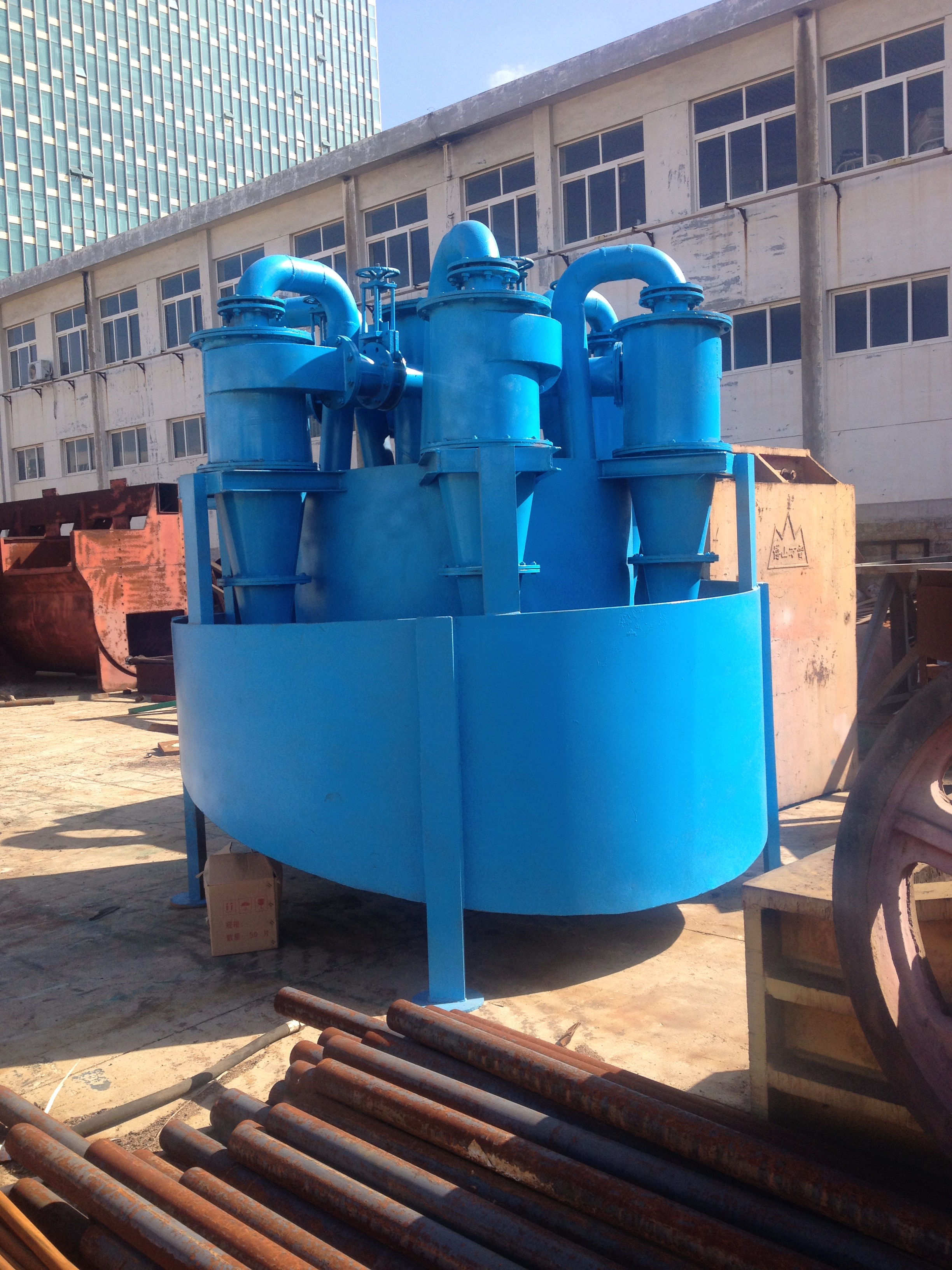 分級(jí)機(jī)溢流自流到高效攪拌槽攪拌,攪拌后礦漿去浮選。 浮選粗掃選后的尾礦作為最終尾礦用礦漿泵打入旋流器組分粗礦、細(xì)礦。粗礦自流到脫水篩,脫水篩脫水到尾礦庫(kù)。